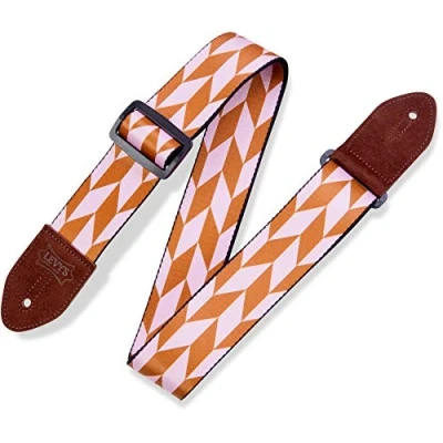 Amazon Prints Series Levy's 2" Wide Printed polyester guitar strap Adjustable to 60" One-ply printed polyester guitar strap with suede leather ends and vintage logo. Black plastic loop and slide hardware Designed by Levy's industry leading fashion designers