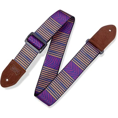Prints Series Levy's 2" Wide Printed polyester guitar strap Adjustable to 60" One-ply printed polyester guitar strap with suede leather ends and vintage logo. Black plastic loop and slide hardware Designed by Levy's industry leading fashion designers