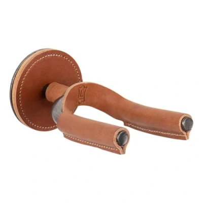 Forged Steel Guitar Hanger with Smoked Metal & Tan Veg-Tan Leather Yoke Wraps Wall Mounted Solid Steel Yoke with Stitched Leather Wrap Swivels to Accommodate Most Headstocks Includes One (1) Leather Wrapped Guitar Hanger Safe for Standard Polyurethane Finishes, Not Recommended for Vintage/Lacquer Finishes Leather Crafted & Assembled in Novia Scotia, Canada