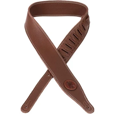 2 1/2 inch triple-ply super-soft garment leather guitar strap with contrasting double stitching. Adjustable from 41 inches to 54 inches. Also available in extra long (xl), which adds 12 inches to overall length. Fantastic quality guitar strap Made in canada