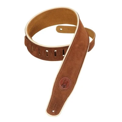 Levy's Leathers Mss3cp brn Suede Leather Guitar Strap with Cream Piping Brown