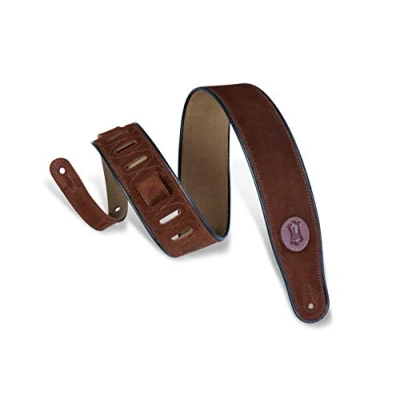 2 1/2 inch Signature Series suede guitar strap with black decorative piping. Adjustable from 38 inches to 53 inches. Also available in extra long (XL), which adds 12 inches to overall length.