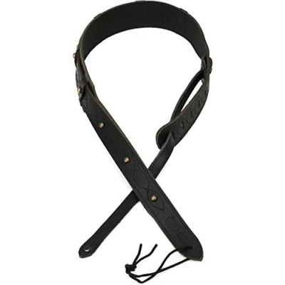 Levy's MV70TRC BLK 2" Veg Tan Leather with Trace Stitch Guitar Strap, Black