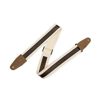 Levy's Unisex's 2" Combo Series Strap with a 1" Leather Strip Cotton Adjustable from 35" to 60" Guitar, Natural/Dark Brown, One Size