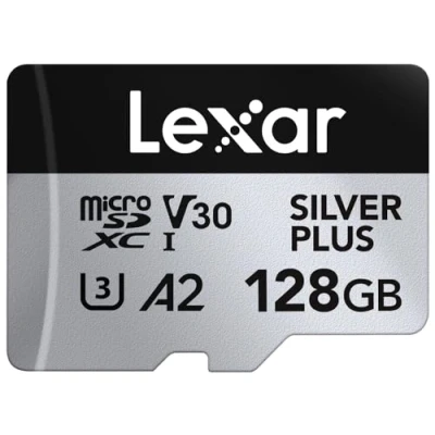 Lexar Silver Plus 128GB Micro SD Card up to 205 MB/s, MicroSDXC UHS I Flash Memory with Adapter, C10, U3, A2, V30, Full HD, 4K UHD, High Speed TF for Drone, Action Camera, Handheld Consoles