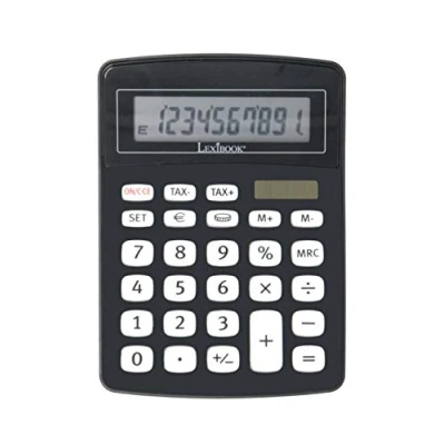 Amazon Tilting display Classic and advanced functions (memory, percentages) Eco-friendly: Solar display and automatic shutdown after a few moments of inactivity. Power supply: solar and battery (included) Dimensions: 14.4 x 10.5 x 2.7 cm.