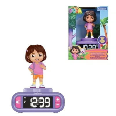 DORA THE EXPLORER FAN NIGHTLIGHT ALARM CLOCK - Dive into Dora’s world with our unique nightlight alarm clock. Dora lights up when pressed, creating a captivating adventure-filled experience. SLEEP-FRIENDLY LCD SCREEN - Choose to turn off or leave the LCD screen on overnight for peaceful nights without glare. 6 SOUNDS AND RINGTONES INSPIRED BY DORA - Choose from 6 ringtones and 6 sounds inspired by the adventures of Dora and her friends. Adjust the volume and select your favorite melody for joyful mornings full of discoveries. INTUITIVE FEATURES - Easily turn off the alarm by pressing the top of the clock or Dora’s character. Enjoy the snooze function for a few extra minutes of sleep. LEXIBOOK QUALITY – Loved by children, approved by parents. A renowned and certified toy brand, Lexibook offers smart, high-quality, and safe products for confident purchasing., Manufacturer: Lexibook