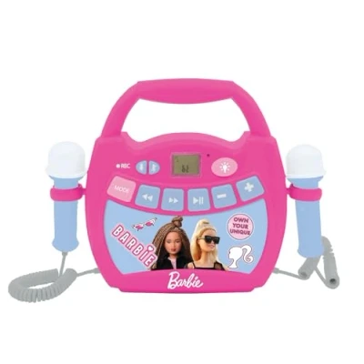 Lexibook, Barbie, Portable karaoke digital player for kids, Microphones, Light effects, Bluetooth®, Record and voice changer functions, Pink, MP320BBZ
