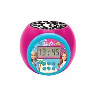 Round shaped alarm clock with backlit LCD screen 3 integrated timers (5/10/15 min) perfect for a night light , Time (12/24H) Great projection to display Barbie symbols onto the ceiling. Projection in 3 different colors to create an incredible atmosphere at night. Very intuitive with large buttons and safe for children to use anytime, Manufacturer: Lexibook