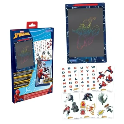 MAGIC SLATE FOR CHILDREN - Draw endlessly with this magic slate featuring a large 28 cm screen, ideal for budding little artists. 6 STENCILS INCLUDED - Learn how to form letters and numbers, and draw your favourite heroes with the stencils included: Spider-Man, Gwen Stacy, Venom... they're all there, ready to draw alongside you! LOCKING BUTTON - Protect your creations with the locking button, preventing accidental deletion. ULTRA-SLIM DESIGN - Take your slate everywhere with you thanks to its ultra-slim, lightweight design, perfect for travelling. STYLUS WITH STORAGE - Includes a stylus with a practical storage space at the top of the tablet so you always have it on hand. LEXIBOOK QUALITY - Appreciated by children, approved by parents. As a renowned and certified toy brand, Lexibook offers smart, quality and safe products for a purchase you can trust., Manufacturer: Lexibook