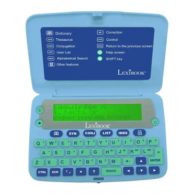 Complete definition of all words in the dictionary, up to 6 definitions per word. 380,000 words - 78,000 synonyms - 8,000 verbs Others powerful features: Thesaurus, Spellchecker, crossword solver & Grammar. Conjugation: more than 8,000 verbs derived form 4 tenses (simple present, simple past, present and past participle). 3 words games: Hangman, Jumble & Anagram solver. An essential resource for anyone seeking knowledge or simply loving English language. Large 3-lines screen for easy reading and new ergonomic size with large buttons. Magnifying function to make things on the screen easier to see. Other uses: calculator, "memo-list", currency and metric convert, clock and date. Help on screen at any time., Manufacturer: Lexibook