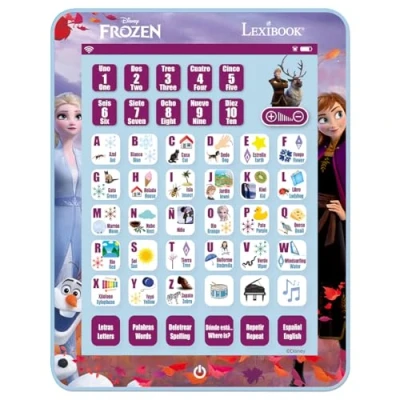 LEXIBOOK Disney Frozen, Educational Bilingual Learning Tablet, learn letters numbers words spelling and music, English/Spanish languages, Blue, JCPAD002FZi2LXB
