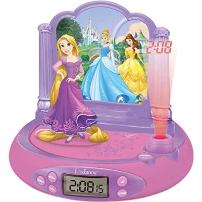 Lexibook Disney Princess Rapunzel Projector clock, built in night light, time projection onto the ceiling, sound effects, battery powered, Pink/Purple, Standard