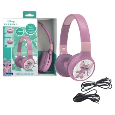 LEXIBOOK, Disney Stitch, Angel 2 in 1 Bluetooth & Wired Headphones with microphone and control buttons, Foldable Adjustable, Long lasting rechargeable battery, Pink, HPBT010D1LXB