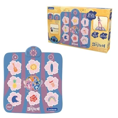 LEXIBOOK, Disney Stitch, Stitch Electronic Dance Mat, Bluetooth and Light Up with 6 Game Modes, Pink, DM10D