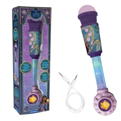 LEXIBOOK, Disney Wish, luminous Microphone for children, musical toy, built in speaker, effects, Aux socket, Purple, MIC90WILXB