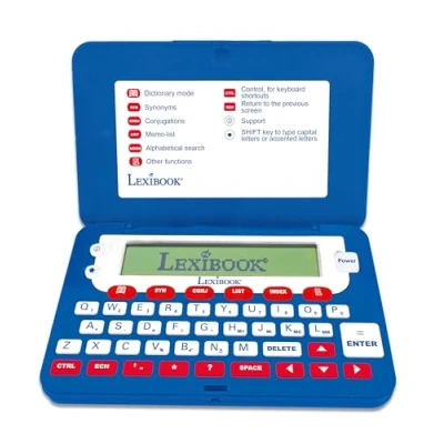 MASTER THE ENGLISH LANGUAGE - Find the right word by browsing the 380,000 words in this dictionary and their complete definition (up to 6 definitions per word). Expand your vocabulary with over 70,000 synonyms. SPELLING & GRAMMAR - No more spelling mistakes thanks to over 3 million corrections! Master the conjugation of more than 8,000 verbs derived from 4 tenses and improve your communication skills. CROSSWORD SOLVER & WORD GAMES - Stimulate your mind by with the crossword solver and letter matching function. Play with words with Hangman, Jumble and the anagram solver. ERGONOMIC DESIGN - The elegant new case and large, intuitive keys make using this dictionary a piece of cake. The 4-line display and its magnifier function (3 giant lines) make it easy to read. ADVANCED FUNCTIONS - Take advantage of practical functionalities (‘User-list’, calculator, currency and metric converters) to meet your everyday needs! LEXIBOOK QUALITY - Loved by children, approved by parents. A renowned and certified toy brand, Lexibook offers smart, high-quality and safe products, so you can buy with confidence., Manufacturer: Lexibook