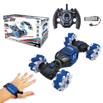 A remote control car with gesture control! 2 control modes: with the remote control or with the gesture control bracelet! Gesture control: the car moves forward, backward, or sideways thanks to the motion sensor integrated into the bracelet. Drift function: lateral and diagonal movements. Demo mode for crazy stunts in music!, Manufacturer: Lexibook