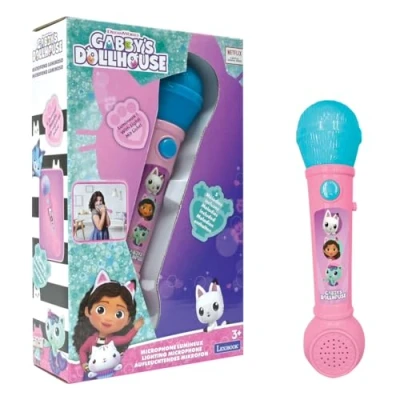 LUMINOUS MICROPHONE - Dazzle your children with the colourful lights of this children's microphone that dance to the rhythm of their voices, creating a fun and festive atmosphere. CHEERING AND CLAPPING - Press the central button on the microphone to hear the crowd clapping and cheering for your child, boosting their confidence. 5 INCLUDED MELODIES - Enjoy 5 lively tunes that will keep your child singing and dancing for hours, perfect for family fun. INTEGRATED SPEAKER - Enjoy clear sound thanks to this microphone's integrated speaker, allowing your child to make his voice heard like a real star. GABBY'S DOLLHOUSE DESIGN - A design inspired by children's favourite series Gabby's Dollhouse, adding a touch of magic and fantasy to every performance., Manufacturer: Lexibook