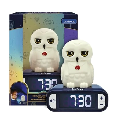 MAGICAL NIGHTLIGHT ALARM CLOCK - Dive into the world of Harry Potter with our unique nightlight alarm clock. Hedwig lights up when you press, creating a captivating experience. SLEEP-FRIENDLY LCD SCREEN - Choose between turning off or leaving the LCD screen on during the night for peaceful, glare-free nights. 6 HARRY POTTER SOUNDS AND RINGTONES - Choose from 6 ringtones and 6 sounds inspired by the magical world of Harry Potter. Adjust the volume and select your favorite melody for magical mornings. INTUITIVE FEATURES - Easily turn off the alarm by pressing the top of the clock or Hedwig. Enjoy the snooze function for a few extra minutes of sleep. LEXIBOOK QUALITY - Loved by children, approved by parents. Renowned and certified toy brand Lexibook offers smart, quality, and safe products for a purchase you can trust.