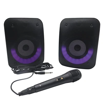 Have fun with the two speakers and sing along to your favourite music thanks to the included microphone! Multicoloured light effect! 3 hours of autonomy Compatible with all devices equipped with Bluetooth 5.0 TWS function: synchronize 2 together to enjoy stereo sound.