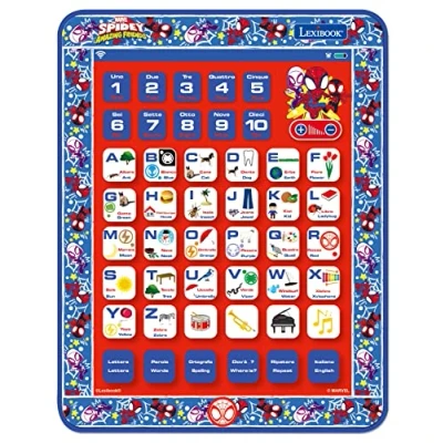 Lexibook JCPAD002SPi5 Spider Man Spidey and His Amazing Friends Educational Bilingual Interactive Tablet, Toy to Learn Letters Numbers, Spelling, Music, English/Italian