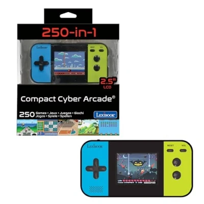 LEXIBOOK JL2377LXB Compact Cyber Arcade Portable Console, 250, LCD, Battery Operated, Video Game for Children, Black/Blue/Green