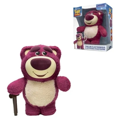 LOTSO ELECTRONIC PIGGY BANK – Keep your savings safe with this interactive piggy bank featuring Lotso, the famous pink bear from Toy Story. ORIGINAL OPENING – Use Lotso’s cane to open the piggy bank and access your treasure. BUILT-IN SOUND EFFECTS – Each interaction triggers fun sounds to make saving even more enjoyable. DOUBLE FUNCTION – A single slot allows for inserting both coins and bills, ensuring simple and intuitive use. LEXIBOOK QUALITY – Loved by children, approved by parents. A renowned and certified toy brand, Lexibook offers smart, high-quality, and safe products for confident purchasing., Manufacturer: Lexibook