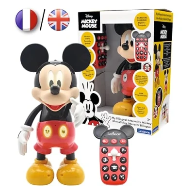 MASTERFUL CONTROL - Direct Mickey with the delightful Mickey-shaped remote or effortlessly guide him with hand gestures. He smoothly glides in 2 speeds—walking and sliding—for endless fun! AWAKEN YOUR LEARNING - Mickey is your interactive programming mentor! Learn coding as Mickey showcases his skills and guides you through programming basics, sparking creativity. BILINGUAL COMPANION - Embark on English language discovery with Mickey's authentic voice in both French and English. Educational bilingual interactions for immersive playtime learning! KNOWLEDGE GALORE - Dive into 180+ quizzes spanning math, geography, music, animals, and more! Expand horizons with captivating challenges, creating an engaging and enriching experience. ENCHANTING ENTERTAINMENT - Mickey reads minds with AI! Guess the animal you're thinking of through Mickey's vast biodiversity wisdom. Plus, dance away to 10 melodies, light up the room with Mickey's eyes, and more! LEXIBOOK QUALITY - Appreciated by children, approved by parents. A renowned and certified toy brand, Lexibook offers smart, quality and safe products for a purchase you can trust., Manufacturer: Lexibook