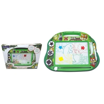 This great magnetic drawing board will encourage your kids to let their creativity and imagination go wild! A great design with animals: giraffe, zebra, kangaroo, hippopotamus, tiger, elephant and fox! Multicolour drawing for hours of drawing fun. Draw or write with the attached pen and stamps, and simply use the eraser slider to start all over again! 1 attached magnetic pen., Manufacturer: Lexibook