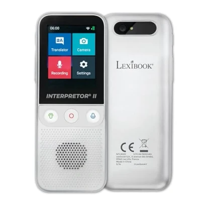 Interpretor III works at the touch of only one button! Language learning to practice words' pronunciation which allows you to improve your accent. Conference mode to chat with several members in different languages. Online voice translation of up to 137 languages via Wi-Fi. Speak, it provides on-screen translation for all languages plus spoken translation for 47 of them, as well as in conference. Offline voice translation in 16 languages: English (AU, UK, US, CAN, Indian), Chinese (simplified, traditional), German, Spanish, French (France), Italian, Japanese, Korean, Dutch, Portuguese (Brazil), and Russian. Photo translation in up to 137 languages thanks to its 5MP camera, and recognition 44 languages. Scan, it translates instantly! Perfect for translating explanations at a museum, magazines, newspapers, or transit system information. High-quality colour touch screen (2.4 ’’ - 6.1 cm) and compact design (13.5 x 1.5 x 6.3 cm) to carry it anywhere you travel. Automatic updates to provide the most recent and complete translation performance. Voice recorder with up to 5 hours of recording storage capacity. Exchange rate information on the country and the currency. Rechargeable 1500 mAh battery for several days of use on-the-go. Headphones jack. Included in the box: 1 micro USB type C cable, 1 pair of earphones, 1 wrist strap. Android 7.0 operating system, Manufacturer: Lexibook