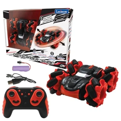 Lexibook RC58, Crosslander slide, remote control car, up to 12km/h, 4 wheel drive, reversible, crazy 360 stunts, light effects, rechargeable, red/black