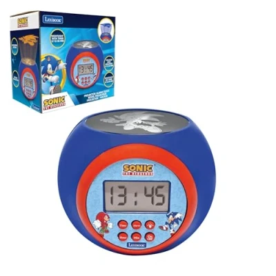 SONIC PROJECTOR ALARM CLOCK - Project Sonic on the walls of your child’s room with this projector alarm clock! They will fall asleep next to their favourite characters. WITH BUILT-IN NIGHTLIGHT - Create a reassuring atmosphere with the nightlight function that automatically switches off after 5, 15 or 30 minutes, ideal for falling asleep peacefully. MULTICOLOUR PROJECTION - You can change the colour of the projection (blue, yellow or red) for a magical, playful experience. DIGITAL TIME DISPLAY - The time is clearly visible on the backlit LCD screen, with alarm and snooze function for gentle wake-ups at your child's pace. ATTRACTIVE DESIGN - The rounded design in bright colours of Sonic makes this projector alarm clock the perfect decoration for a child’s room., Manufacturer: Lexibook