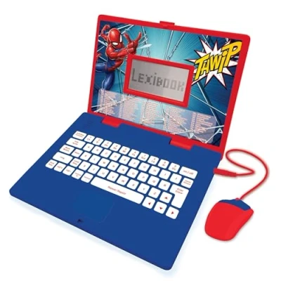 Lexibook, Spider Man, Educational and Bilingual Laptop Spanish/English Toy for Child Kid (Boys & Girls), 124 Activities, Learn Play Games Music, Red/Blue, JC598SPi2LXB