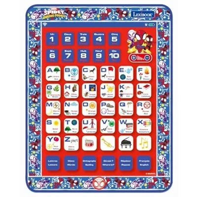 LEXIBOOK Spider Man Spidey and His Amazing Friends Educational Bilingual Learning Tablet, English/French languages, numbers, letters, piano JCPAD002SPi1LXB