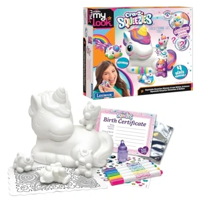 ADORABLE BABY ANIMALS – Discover a unicorn, a bear, a dog, or a cat with their little ones to cuddle and color. SCENTED FIGURINES – 5 soft and scented Cra-Z-Squeezes to collect and personalize. INCLUDED ACCESSORIES – Mini markers, baby bottle, blanket, stickers, and birth certificate for playing and decorating. SURPRISE TO DISCOVER – Each animal conceals a mystery accessory for even more fun and surprises! LEXIBOOK QUALITY – Loved by children, approved by parents. As a renowned and certified toy brand, Lexibook offers smart, high-quality, and safe products for a confident purchase., Manufacturer: Lexibook