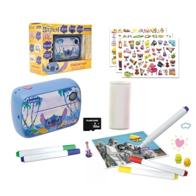 INSTANT PRINT – Capture your best memories with Stitch! Press one button and print your photos in black and white in one second, cartridge-free! DUAL CAMERA – Two genuine 1.3 MP sensors on the front and back for stylish selfies and portraits, expandable up to 48 MP for stunning posters! COMPLETE CUSTOMIZATION KIT – Personalize your photos with frames, filters, 3D stickers, and colored markers. Let your creativity run free with Stitch as your companion! INCLUDED ACCESSORIES – MicroSD card, wrist strap, 4 rolls of thermal paper, and a 1200 mAh rechargeable battery for hours of fun and unlimited photo printing! LEXIBOOK QUALITY – Loved by children, approved by parents. A renowned and certified toy brand, Lexibook offers smart, high-quality, and safe products for confident purchasing., Manufacturer: Lexibook
