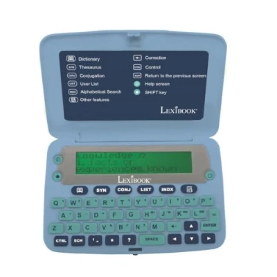 Complete definition of all words in the dictionary, up to 6 definitions per word. 380,000 words - 78,000 synonyms - 8,000 verbs Others powerful features: Thesaurus, Spellchecker, crossword solver & Grammar. Conjugation: more than 8,000 verbs derived form 4 tenses (simple present, simple past, present and past participle). 3 words games: Hangman, Jumble & Anagram solver., Manufacturer: Lexibook