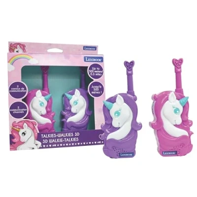 STAY IN TOUCH - Communicate up to 500 metres outdoors with these Unicorn walkie-talkies, perfect for outdoor adventures (depending on terrain and weather conditions). 2 COMMUNICATION CHANNELS - Choose between two channels for clear, interference-free communication. Change channels to communicate with 2 different groups at the same time without getting in each other’s way! UNICORN 3D DESIGN - Take these walkie-talkies in the shape of a Unicorn with you wherever you go! Their 3D design will give you the impression of always having a magical companion by your side. PRACTICAL BELT CLIP - Take your walkie-talkies everywhere with the integrated belt clip, perfect for adventures on the move. EASY TO USE - Designed with children in mind, these walkie-talkies with their intuitive buttons are easy to learn and use independently., Manufacturer: Lexibook
