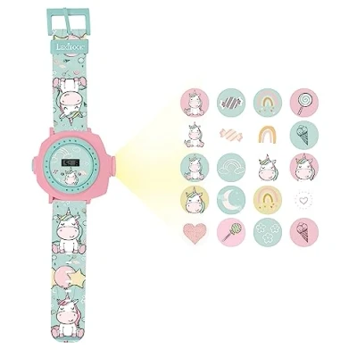 UNLEASH IMAGINATION - Project 20 enchanting unicorn images anywhere, igniting your child's imagination and bringing fairy tales to life. Communicate with friends through coded messages using the captivating projections. PERFECT FIT, ENDLESS JOY - The adjustable bracelet ensures a comfortable and secure fit on small wrists, guaranteeing hours of uninterrupted fun. No more worries about uncomfortable or loose accessories! CAPTIVATE WITH STYLE - Enhance your child's fashion statement with a movable ring that effortlessly projects captivating unicorn images. Stand out from the crowd with this stylish and functional timepiece. ALWAYS IN SYNC - Keep track of the date and time with the digital screen display. A perfect balance of functionality and fun, ensuring your child is punctual while enjoying the magic of unicorns. QUALITY ASSURED - Enjoy peace of mind with a 2-year warranty, reflecting our commitment to delivering a high-quality product. Invest in lasting memories, knowing your purchase is protected against any manufacturing defects.