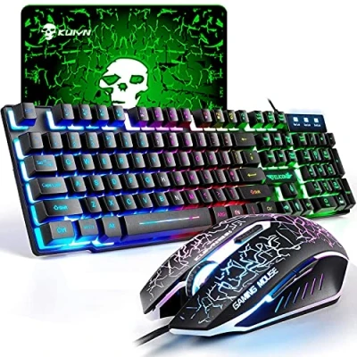 LexonElec UK Layout Gaming Keyboard and Mouse Sets Rainbow Backlit Ergonomic Usb + 2400DPI 6 Buttons Optical LED FREE Pads