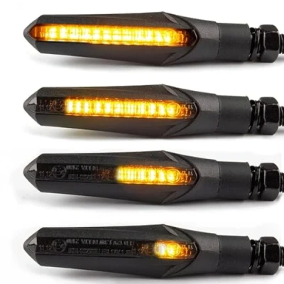 The indicator on a motorcycle is a signaling device used to communicate the rider's intent to turn or change lanes. It typically consists of a light that flashes to alert other road users. Mounted on the front and rear of the bike, indicators are essentia Lextek LED Indicators Motorcycle Sequential Matt Black ECE Compliant Clear REAR In the category of Electrical > Lighting and Bulbs > Indicators Lextek, Motorcycle/Scooter, Sequential Matt Black Lextek Motorcycle/Scooter Sequential Matt Black LED Indicators