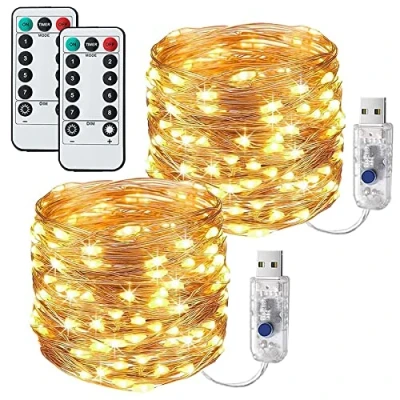 Lezonic [2 Pack] Fairy String Lights, 120LED 12M/40Ft 8 Modes USB Plug in Powered Copper Lights Waterproof for Outdoor/Indoor with Remote Timer Bedroom, Party, Wedding, Christmas(Warm White)