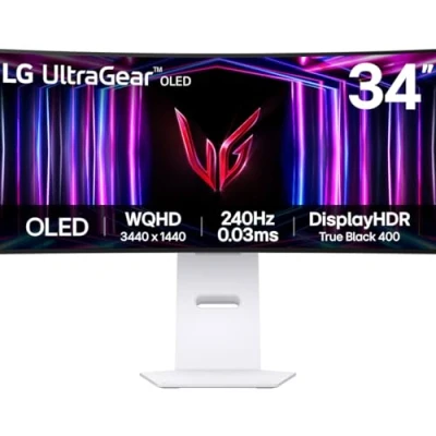 LG Ultragear Curved OLED Gaming Monitor 34GS95QE, 34 Inch, 1440p, 240Hz, 0.03ms, Display, HDR 10, NVIDIA G Sync & AMD FreeSync Compatible, Smart Energy Saving, DisplayPort, HDMI