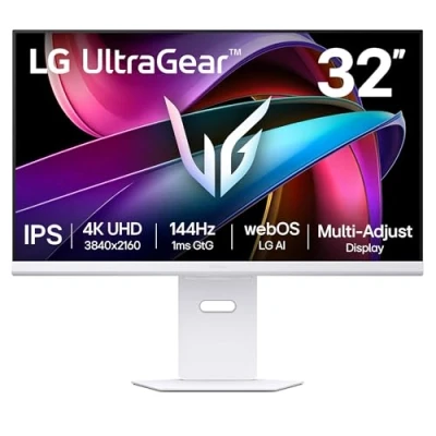 LG UltraGear G8s SMART Gaming Monitor 32G810SA W : 4K UHD 32 Inch, 144Hz, 1ms, HDR 400, webOS AI, Built in Speakers, Wi Fi, Bluetooth, DP1.4, HDMI 2.1, USB C, White