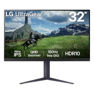 LG UltraGear Gaming Monitor 32GS85Q, 32 inch, 1440p, 180Hz, 1ms Response Time, IPS Panel, NVIDIA G Sync compatible & AMD FreeSync, Smart Energy Saving, DisplayPort, HDMI
