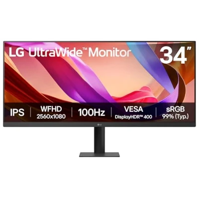 JoybuyThe LG UltraWide™ 34U511A-B.AEU 34" Ultra Wide PC Screen features a 2560x1080 IPS panel, 100Hz refresh rate, HDR10, sRGB 99% color, and ergonomic tilt and height adjustments, making it ideal for multitasking, gaming, and content creation with vivid color and reduced eye strain.