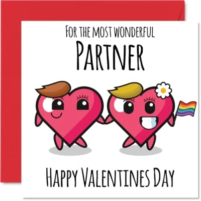 LGBT Valentines Card Wonderful Partner Happy Valentine's Day Cards for Girlfriend Wife, 145mm Greeting Valentine