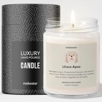 Lhasa Apso Candle Over 100+ Breeds 220g Soy Wax Madagascan Vanilla & Jasmine Gift for Christmas or Birthday Dog Lover Candles by Makester