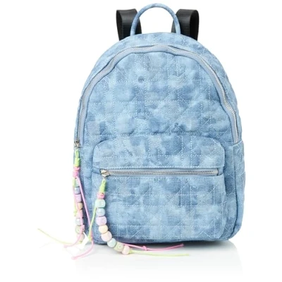 Quilted Backpack Made of faux leather or fabric Tie-dye fabric Front pocket with zip Zip pendant with colourful beads